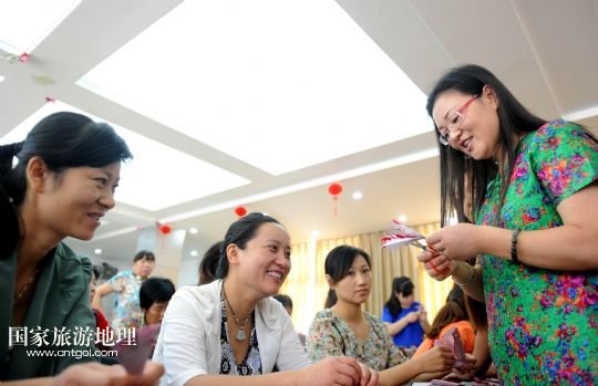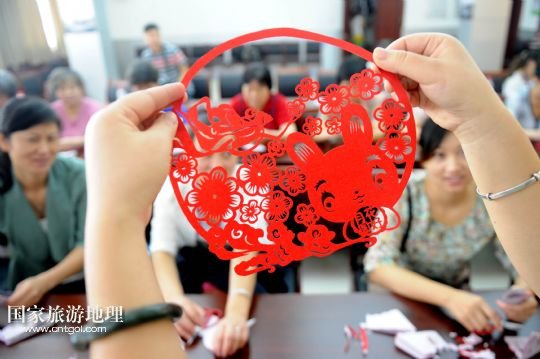 國家旅游地理 安徽合肥9月17日訊 9月17日,非遺剪紙傳人侯宏妹向學員講解“花好月圓”剪紙作品的制作。當日,合肥市清溪路社區(qū)邀請非物質文化遺產(chǎn)剪紙傳人侯宏妹來到社區(qū)向剪紙愛好者傳授技藝,并一起創(chuàng)作中秋題材的剪紙作品,迎接中秋佳節(jié)。 /新華社記者劉軍喜攝