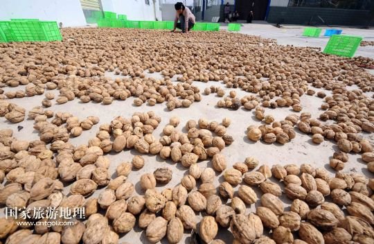 國家旅游地理 青海海東9月18日訊 青海省循化撒拉族自治縣積石鎮(zhèn)的農民在晾曬薄皮核桃(9月17日攝)。金秋時節(jié),在青海省循化撒拉族自治縣核桃種植區(qū),果肉豐滿的薄皮核桃開始上市。近年來,循化縣利用黃河上游的氣候和土壤特點,發(fā)展薄皮核桃特色產業(yè)。目前,循化縣核桃種植面積超過3萬畝,小小核桃成為當地農民致富的重要渠道。 /新華社記者 侯德強 攝