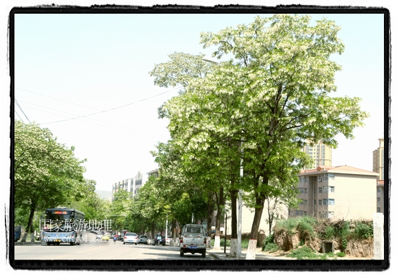 國(guó)家旅游地理 甘肅平?jīng)?月31日訊(通訊員 鄭兵 攝影報(bào)道)日前,甘肅省平?jīng)鍪谐菂^(qū)各大主要街道兩旁的槐樹(shù)開(kāi)滿花朵,一簇一簇,一串一串,白的像雪,美得像畫(huà),冰肌綽約,清素高雅,滿街道彌漫著槐花的馥郁香氣,讓來(lái)往的行人為之陶醉。宋朝大文豪蘇東坡曾有詩(shī)云:“槐林五月蕩瓊花,郁郁芬芳醉萬(wàn)家。”據(jù)悉,槐花除了觀賞意外,用槐花做的湯飯還有開(kāi)胃解毒瀉火等功效,是食藥兩用的的極品,被譽(yù)為“天賜的禮物”。