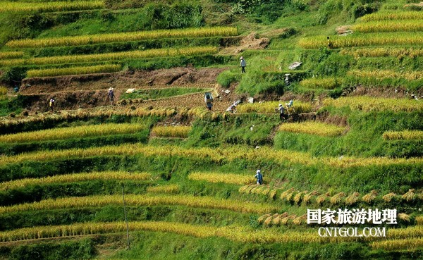 國(guó)家旅游地理貴州黔東南9月6日訊(龍夢(mèng)前 攝影報(bào)道)9月5日,貴州省黔東南苗族侗族自治州從江縣加榜鄉(xiāng)黨扭村、加頁(yè)村和加車村萬(wàn)畝水稻開(kāi)鐮收割。